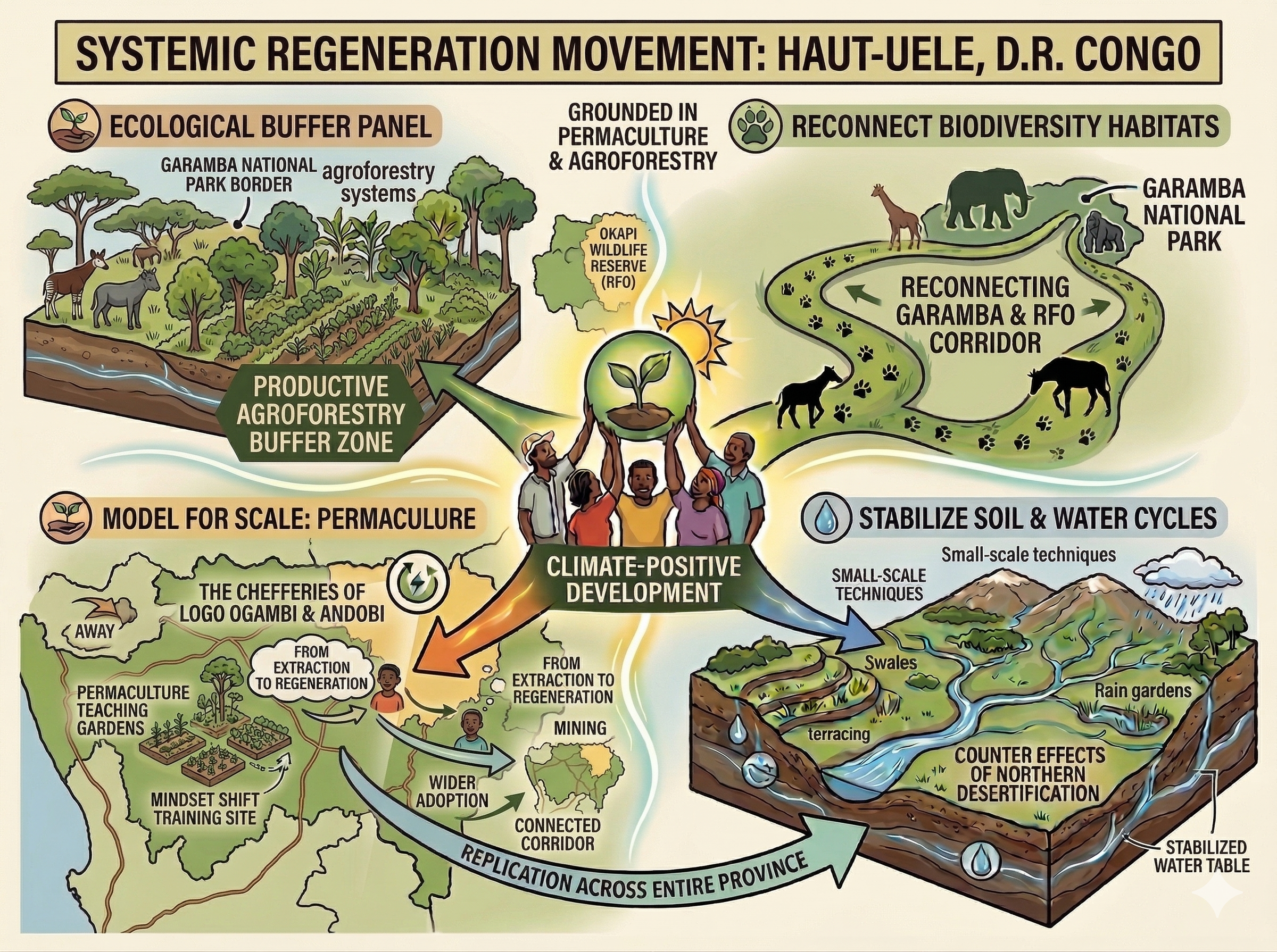 Our aim is to establish a systemic regeneration movement throughout Haut Uele, grounded in permaculture and agroforestry:
